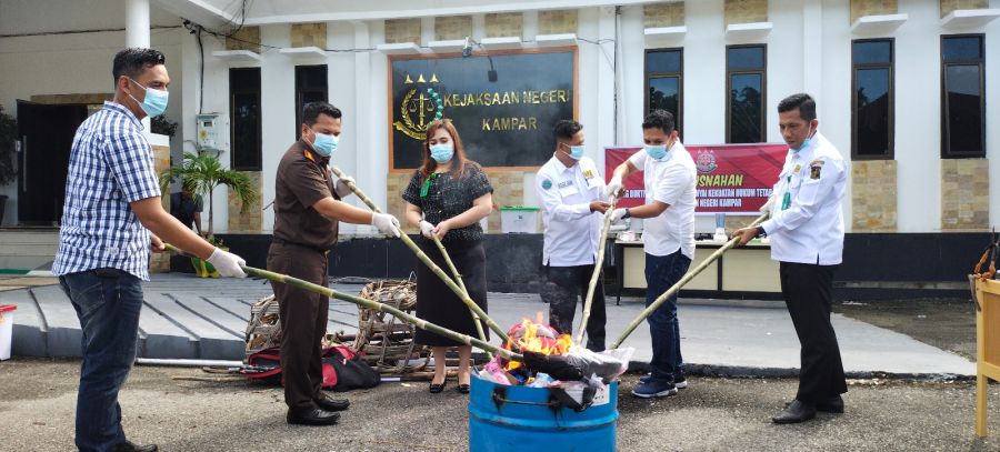KAMPAR - Sejumlah Barang Bukti dilakukan pemusnahan oleh Kejaksaan Negeri Kampar, bertempat di halaman setempat, Selasa (11/7/23). Dimana, Barang Bukti yang dimusnahkan itu sudah mempunyai kekuatan hukum tetap (Inkrah). Kajari Kampar, Sapta Putra memimpin langsung…...