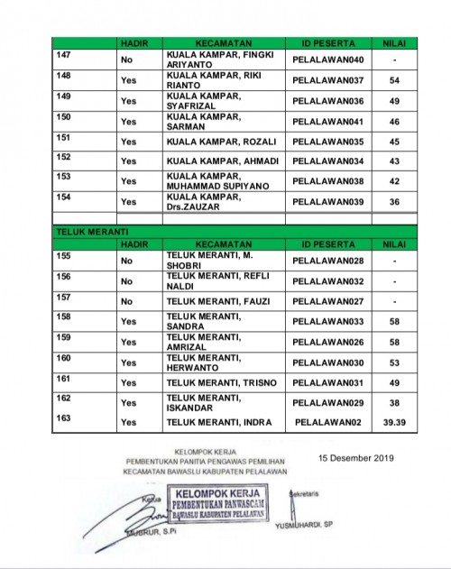 Portalriau.com-Pangkalan Kerinci, Menjelang pemilihan Kepala Daerah Kabupaten Pelalawan Calon Bupati dan Wakil Bupati Tahun 2020, Bawaslu Kabupaten Pelalawan mengadakan seleksi Panwascam Se Kabupaten Pelalawan yang hasilnya sudah ditetapkan pada tanggal 15 Desember 2019. Sebanyak…...