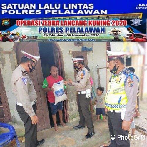 Portalriau.com-Pelalawan. Satuan Lalu Lintas Kepolisian Resort Pela?awan melaksanakan kegiatan Bantuan Sosial bagi masyarakat yang tidak mampu dan terdampak Covid-19 dipimpin langsung Kapusdalops Operasi Zebra Lancang Kuning 2020 sekaligus Kanit Lantas Polsek Pangkalan Kerinci AKP RUDI…...