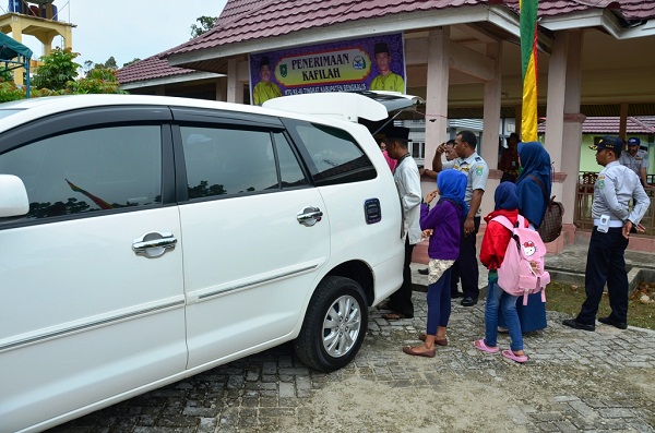BENGKALIS —Sejumlah qari dan qariah MTQ ke-40 tingkat Kabupaten Bengkalis, yang mewakili masing-masing kecamatan tiba di Bengkalis. Kedatangan khafilah tersebut disambut oleh panitia pelaksana di Balai Kantor Camat Bengkalis, Jum’at pagi (29/5/15).Dalam penyambutan itu, tampak…...