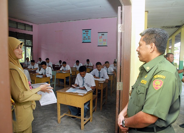 Wakil Bupati Siak H. Alfedri tinjau pelaksanaan ujian nasional tahun 2015 di SMAN 1 dan SMKN 1 Mempura, Senin 13/4/15. Turut hadir pada kesempatan tersebut tim Monitoring dari Universitas Riau Hj. Sri Indarti Dekan Fakultas…...